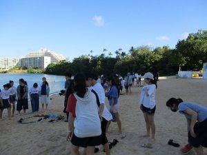 今日の朝食の前に、海辺散策をしました。砂浜では、皆でサンドアートを作りました。学年全員で作った作品なので、完成が非常に楽しみです。グアムの海はどこまでも青くて美しい海です。マリアナ海溝が近くにあるので、その近辺は白波がたっていました。グアムの素敵な自然に触れ合ったことで、心身ともにリフッシュができました。