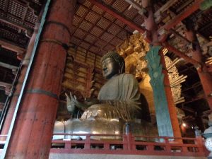 東大寺といえば大仏。約1300年前に建てられた大仏は国宝としては日本最大であり、とても迫力がありました。また東大寺に行くまでの道にはかわいい鹿がたくさんいて、(1360頭!)疲れがふきとびました。 実行委員 N.A & M.H
