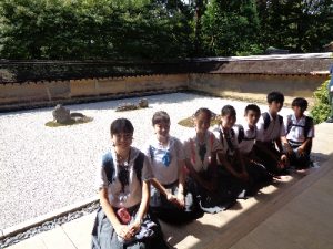 私たち4班は、龍安寺に行きました。枯山水で有名な庭園は、写真で見た時よりも実際に見たほうが100倍きれいに見えました。15個ある石をすべて数えられなかったのは少しくやしいですが、歩くたびに変わる庭園の雰囲気が、とても興味深かったです。