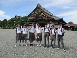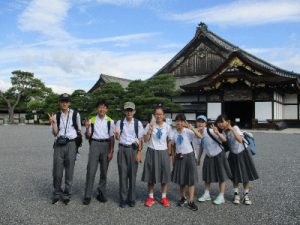 私たち5班は、世界遺産の二条城に行きました。風情のある建物の中は、虎や松が描かれた襖で仕切られ、大政奉還が行われた二の丸御殿の大広間も見ることができました。人が歩くと音が鳴る「鴬張り」の廊下を実際に歩き、貴重な経験となりました。