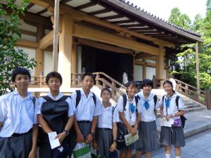 広隆寺には、たくさんの仏像がありましたが、中でも国宝第一号となった弥勒菩薩半跏思唯像からは、美しさと迫力とを感じました。広隆寺までは京福電気鉄道で行きました。京福電気鉄道は小さな電車ですが、京都の街並みを間近に見ることができました。