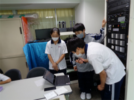最後にPR委員会は(1)校外への情報発信(2)学校の活性化(3)校内への情報発信の3グループに分かれ、活動しています。それぞれ、ブログ更新の検討、放送企画、スポーツ大会の情報配信をしています。※画像は放送のリハーサル風景です。