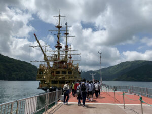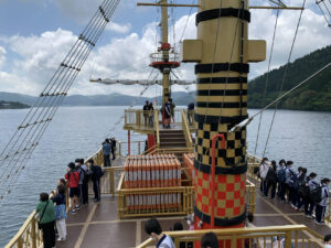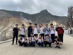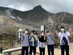 大涌谷では硫黄の匂いが広がり、迫力ある景色に圧倒されました。ロープウェイはクラス全員で乗れたことが、思い出になりました。海賊船から見た箱根の山々も見応えがありました。天気も良く、風が気持ちよかったです。