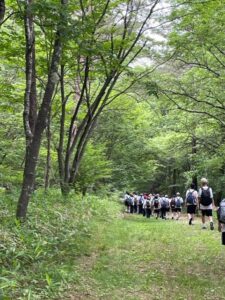 2日目(6月21日)は、朝から班ごとにオリエンテーリングを行いました。10時に清里山荘を出発し、美しの森を経由して清泉寮まで行きました。清泉寮で班ごとにお昼を食べた後、自由時間に鬼ごっこなどをして遊びました。山道や草木の道を歩いていくのは大変でしたが、天気にも恵まれ清里の自然を体感することができました。オリエンテーリングを通して学年同士協力して仲を深めることができ良い経験になりました。