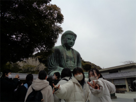 ・2日目は、まず鎌倉の大仏を見ました。とても大きくて圧倒されたのですが、それよりも大きい大仏殿が津波で流されたとは驚きです。大仏殿の柱の台座がいくつも残っていました。