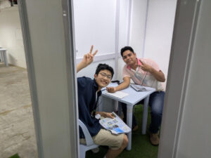 8月18日から8月24日までフィリピンで語学研修を行っています。 授業ではフィリピン人の先生と話しながら英語やフィリピンの文化を学んでいます。例えば早口言葉で発音を練習したり、文を作って文法を学んだり、フィリピンのおすすめの食べ物について話したりしています。 部屋や食事の時間は友達との時間を楽しんでいます。 食堂でスイカ、ドラゴンフルーツ、キウイなどの日本では珍しいシェイクを英語で注文したり、近くのモールで買い物をしたり、ズンバというダンスをしたり、現地でしかできない体験をしています。 みんな、慣れない英語に苦戦しながらも頑張って勉強しています。 (T.T&S.K)