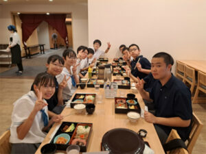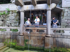 清水寺の舞台は高くて少し怖かったです。参道では、八つ橋や京バウムなどのさまざまなお土産を買うことができました。家で家族と食べようと思います。三十三間堂には1001体の仏像があり、友だちに似た顔の仏像もたくさん見つけました。京都奈良学習では全員で協力して行動し、学年の仲もさらに深まりました。(京都奈良学習プロジェクトN.R)
