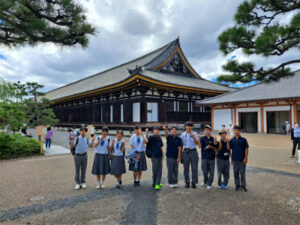 清水寺はとてもスケールが大きく、装飾も赤や緑で色鮮やかでした。景色もきれいで京都タワーも見ることができました。精巧に積まれた石垣や木造の建物を、昔の技術で人力で作ったことに感動しました。三十三間堂では一つひとつの仏像に名前があり、装身具や顔の表情、体のポーズが違い、見ていて飽きませんでした。また目がガラスでできているものもあり、とてもリアルに感じました。この3日間を通して、これまで知らなかった京都奈良の歴史を学び、建造物を見ることができて、とても思い出に残りました。(京都奈良学習プロジェクトH.R)