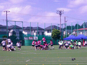 AB組の女子全員で行った競技です。各チームで作戦を練ったり、狙いを定めたりと意外と戦略的な競技だと思います。チームごとの円陣で士気が高まり盛り上がっていました。