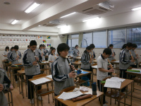 残り1カ月を切った発表会に向けて、武道・ダンス・リコーダーをそれぞれ練習しています。人それぞれ苦手なものがあり、なかなかうまくできないこともありますが、教え合い、励まし合いながら一生懸命頑張っています。また、三学期が終われば私たちは二年生になり、後輩が入学してきます。そこで、日々の生活をもう一度見直しています。朝の読書、授業中、給食の準備、それぞれにおいて、「自覚」を持つことを目標にしました。良い二年生になれるように、クラスとして頑張っていきたいです。(M.Y &M.K)