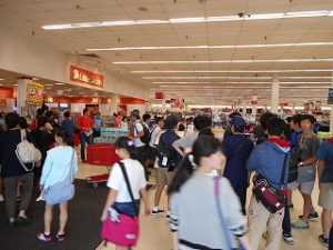 店内は広く、品ぞろえも多く多すぎて、何を買うかを悩んでいる人も多かったようです。しかし、買い物が終わった後の感想では、「いい買い物をした~」や「お目当てのお土産を買えてよかった!」などの声もあり、3年間学んできた英語力を発揮しつつ買い物を満喫していました。グアム観光初日としては、とてもいい思い出のスタートがきれました。