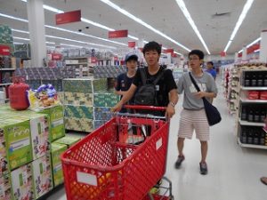グアムに到着してから翌日は遅めの起床でブランチの後、待ちに待ったグアム市内観光をスタートしました。観光初日である今日は、kマートに行き、班行動で買い物を楽しみました。各自、人気のチョコレートや貝殻の入ったキーホルダーなど様々なお土産を買っていたようです。