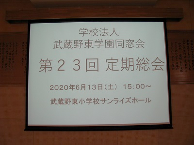 武蔵野東学園 同窓会 第23回 定期総会(武蔵野東小学校サンライズホール)が開かれました。新型コロナウイルス感染予防のため密を避ける工夫をしながらの開催となり、残念ながら毎年行っていた総会後の懇親会は中止となりました。