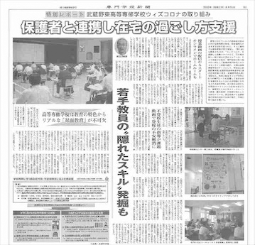 本校の新型コロナウイルス対応について、専門学校新聞(専門学校新聞社発行)に記事が掲載されました。見出しは「保護者と連携し在宅の過ごし方支援」。日頃から、保護者の皆様のご協力ありがとうございます。今後も教職員で工夫を出し合い、コロナ禍でもできる事を模索しチャレンジしてまいります。新しい日常の中、保護者の皆様と連携しながら、お子様の一層の成長を期待していきましょう