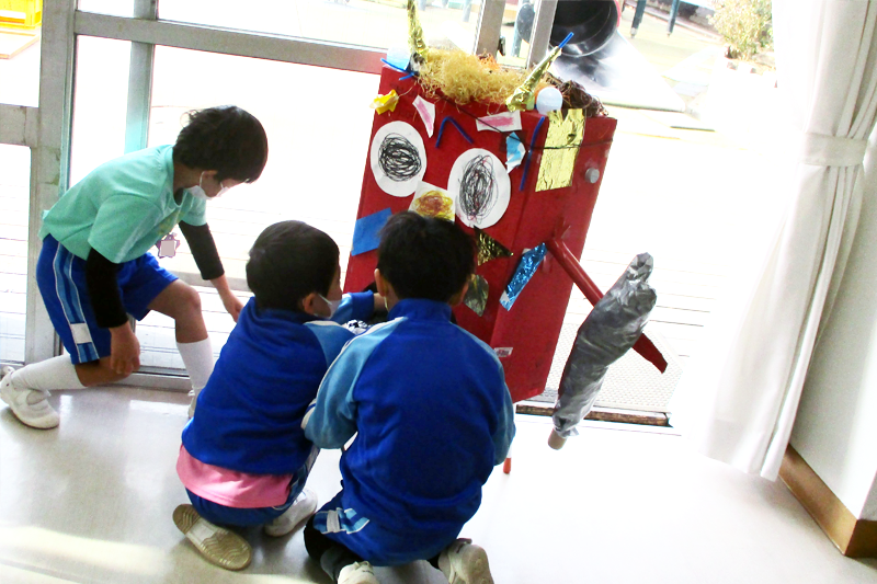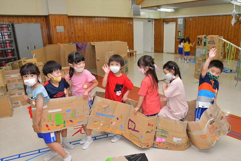 本園の行事には、園児が企画発案をした即興的なものもありますし、園児自身で準備を重ねていくものもあります。その一方で、本園ならではの、大きく華やかな行事にも取り組んでいます。それは、幼児だけでは用意できないスケールの大きな体験をします。